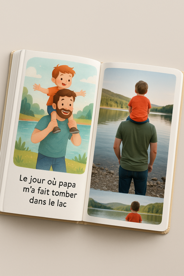 Transformez vos souvenirs et moments du quotidien en une aventure tendre et amusante, racontée comme un livre pour enfants. Ce cadeau touchant, drôle et authentique deviendra un souvenir précieux à transmettre.
