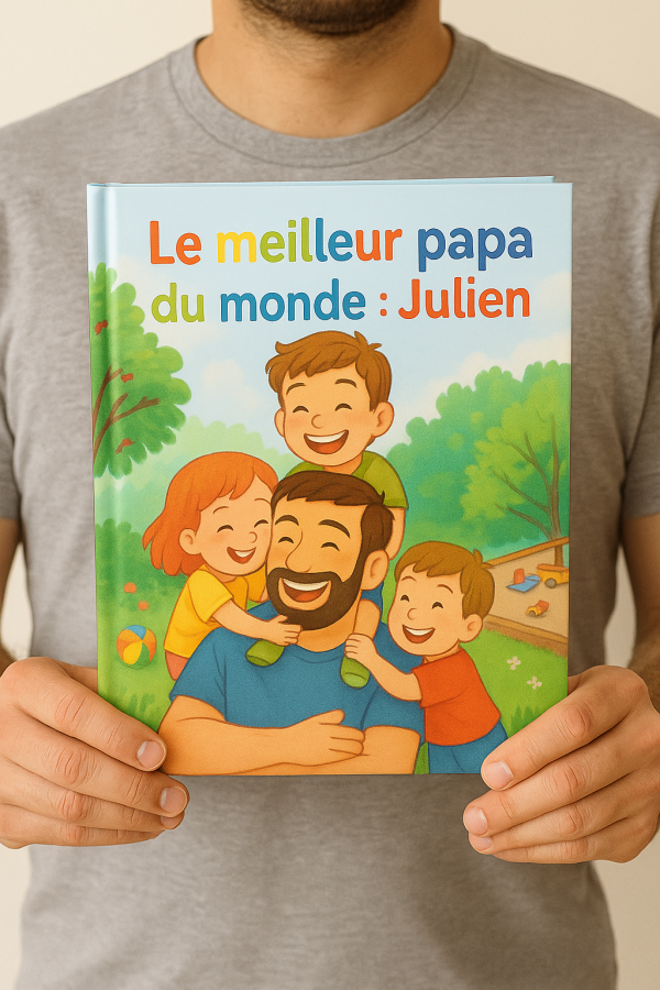 Créez un livre unique et totalement personnalisé pour le meilleur papa du monde ! Grâce à notre concept inédit, vous personnalisez le titre du livre, les illustrations, les personnages, les prénoms et les anecdotes pour en faire une véritable histoire illustrée, à lire et relire en famille.