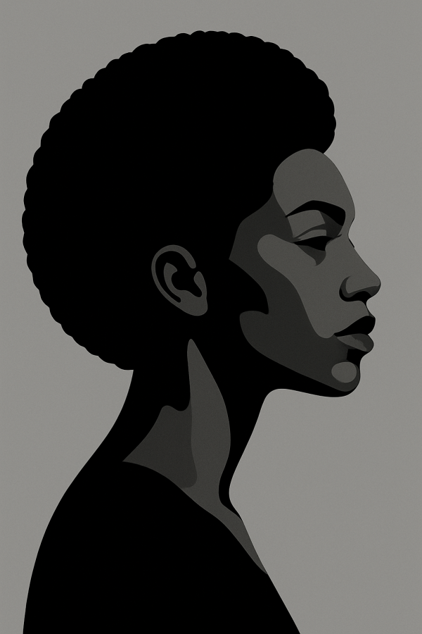 Cette création graphique moderne présente un portrait de profil d’une femme noire aux traits élégants, réalisé en nuances de noir et de gris. Le style artistique minimaliste et épuré utilise des formes géométriques et des ombres délicates pour mettre en valeur les contours du visage, le volume des cheveux afro et la douceur des traits. L’arrière-plan gris uni crée un contraste parfait, mettant en lumière la silhouette et renforçant l’impression de calme et de sérénité. Ce tableau incarne une force tranquille et une beauté puissante, invitant à la réflexion sur l’identité, la confiance en soi et la dignité. L’ambiance sobre et raffinée dévoile un univers où se mêlent élégance, modernité et une touche d’intimité. Cette œuvre graphique, à la fois intemporelle et contemporaine, s’intègre parfaitement dans une décoration d’intérieur minimaliste, urbaine ou chic, apportant une note artistique forte. Parfait pour sublimer un séjour, un bureau ou un espace de création, ce tableau évoque des émotions profondes telles que la fierté, la sérénité et l’estime de soi. C’est aussi une idée cadeau originale et tendance pour les amateurs d’art moderne et de portraits stylisés, apportant une touche d’authenticité et de puissance dans n’importe quel intérieur. Mots-clés : minimaliste, moderne, portrait, noir et gris, silhouette, élégance, abstraction, décoration tendance, puissance, sérénité, art graphique.