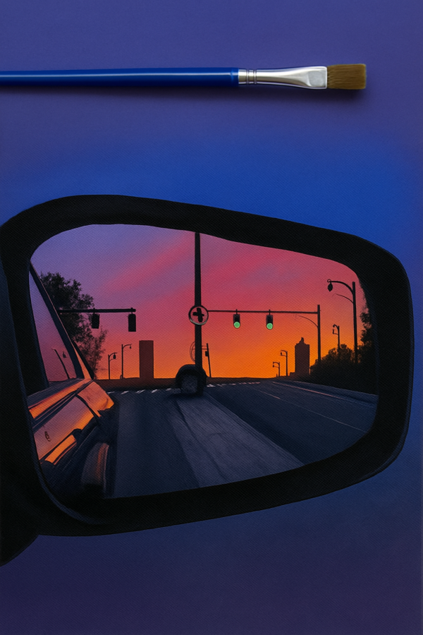 Tableau Rétroviseur au Coucher de Soleil